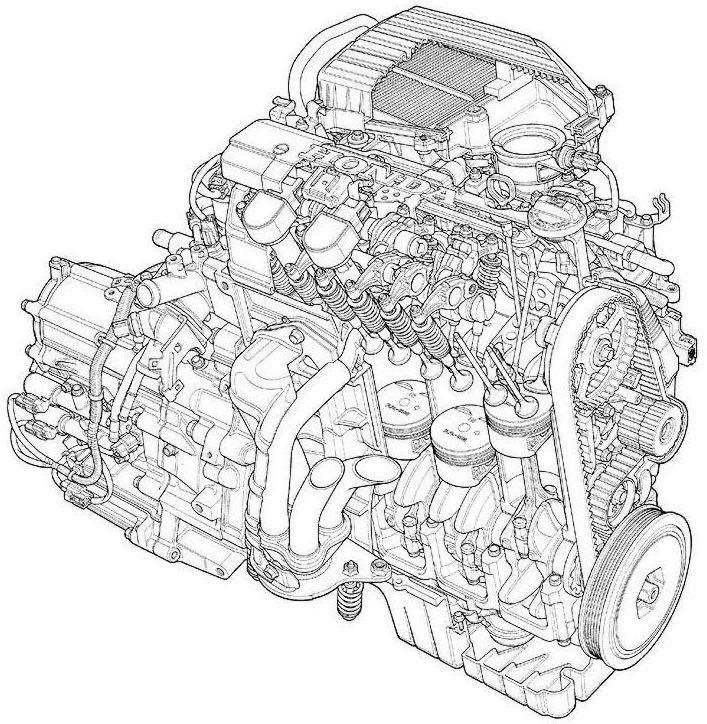 Ременной привод ГРМ (замена ремня требуется после 100 т.км. При обрыве ремня — гнет клапана)